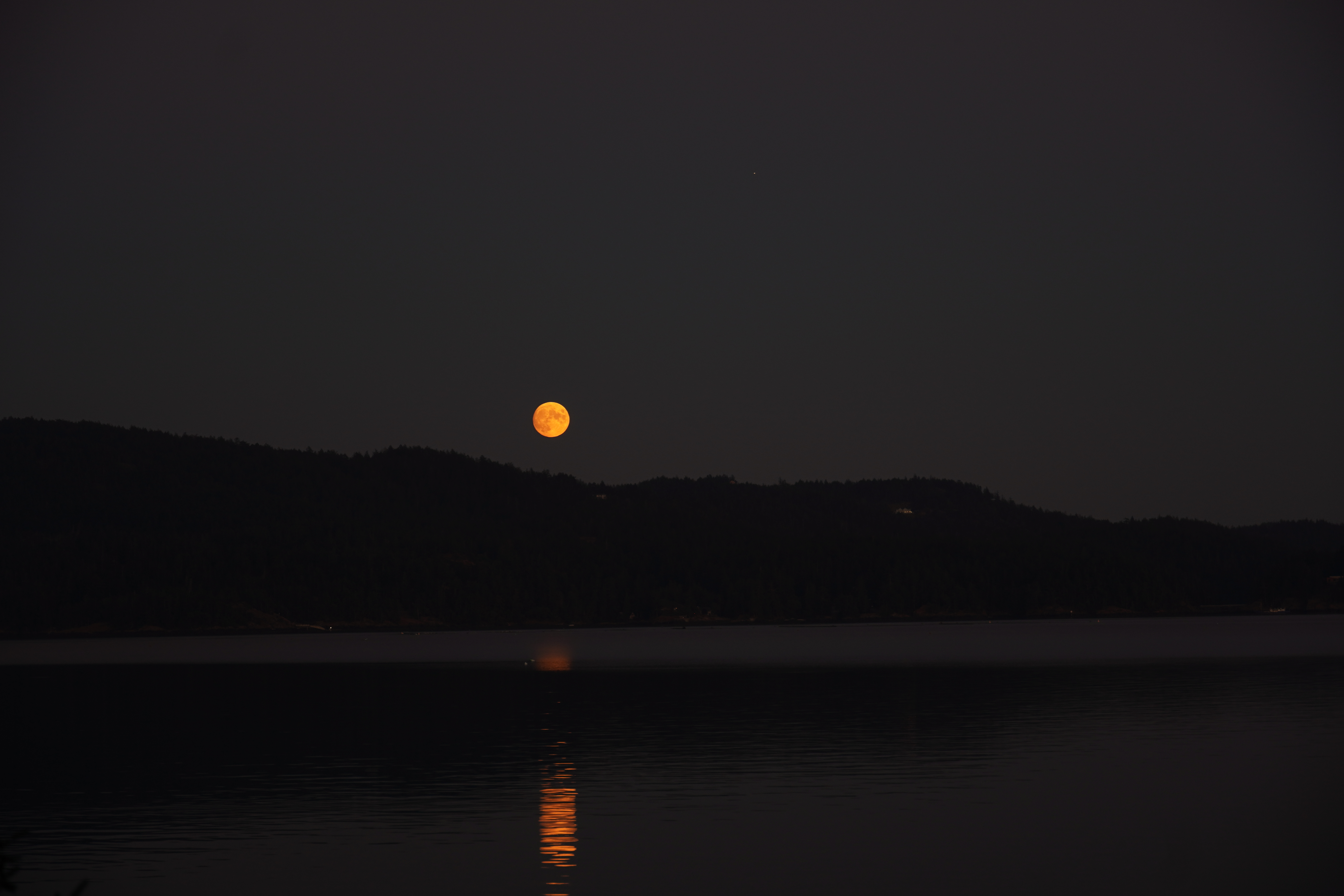 the rising of the moon with the faintest of twinkles of Jupiter at the upper right